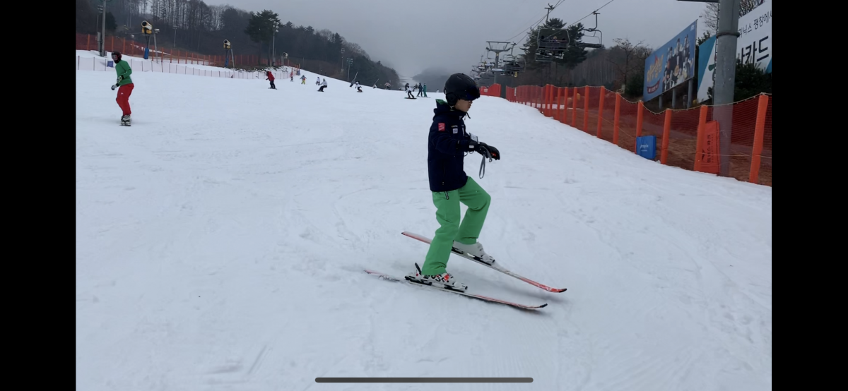 보겐의 와이드 스텐스 에서 패라렐의 클로즈 스텐스 로의 발렌스 를 잡기위하여 스노우플로우턴 을 이용하여 사활강 시 산쪽발을 들어서 한발로 발란스 를 잡을수 있도록 트레이닝
