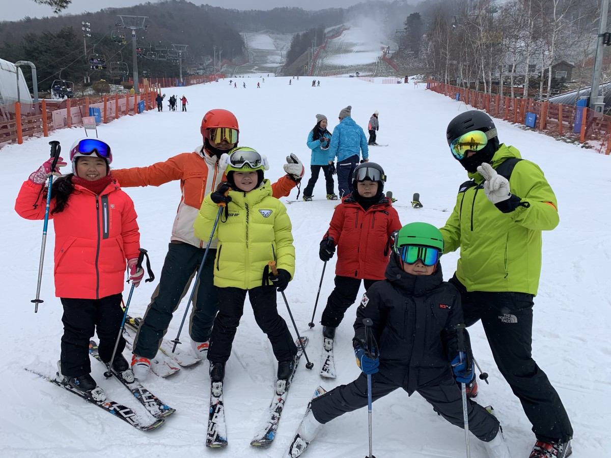 스키를 처음 타는 아이들 이라고는 믿기 어려울 정도의