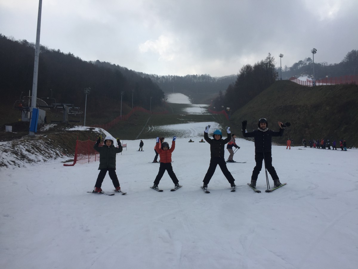 슬로프올라기전 바닥에 간단하게 스키기본자세및간단하게 몸을 풀어준후 도도(초급)슬로프올라가 스키를A자를만들어A자를크게만들어주면정지를하는프로그화렌 수업을가져봤습니다. 아이들이 수업을 잘따라와줘서 30분정도 자유시간을 준후 강습을 끝냈습니다.