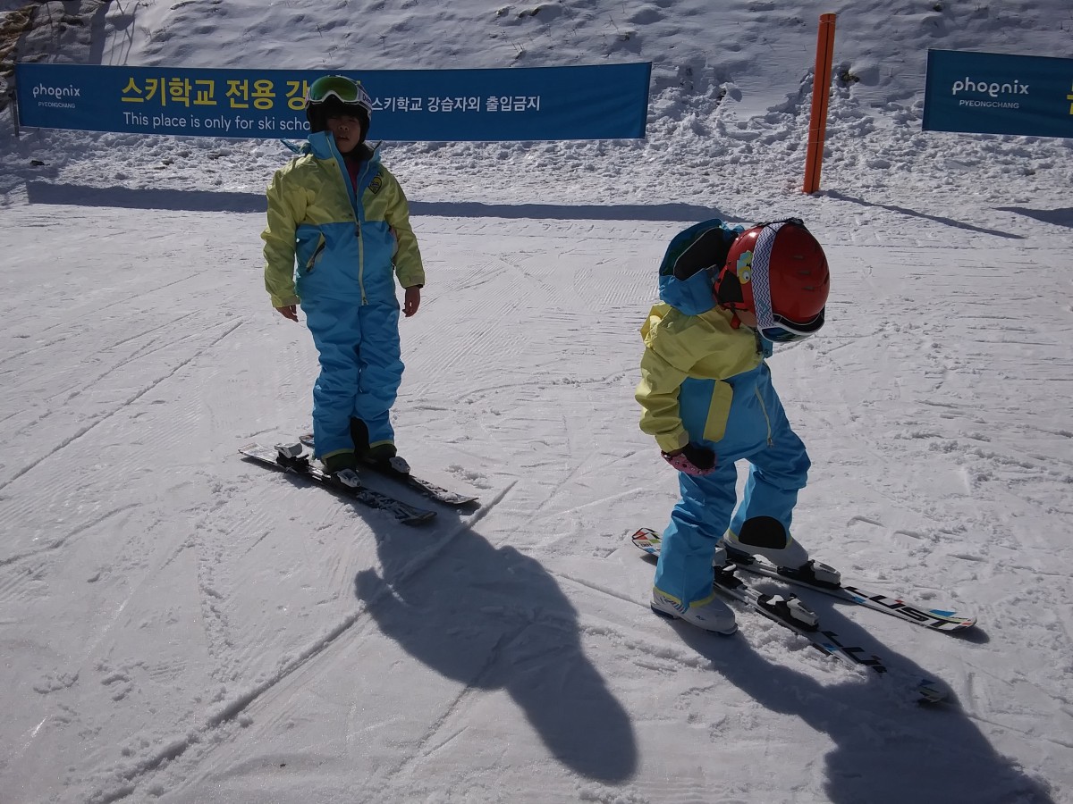 강습내용:스키타기전 장비소개.넘어졌을때인나는방법.스키탈때기본자세를배우고 슬로프타기전에 베이스에서스키를A자로만들어정지하는 프르그화렌수업을가져보다가 아이들이 조금씩 잘내려와서 퓅귄 슬로프로 이동해서 프르그화렌수업을한번도했습니다.아이들이 처음에는 겁도많고 강습시간떄 많이 더워서 아이들이 너무지쳐있길래 음류수를마시면서 10분정도 쉬는시간을 갖고 다시 퓅귄슬로프에가서 스키를A자로만들어업다운을하면서S자로턴을하는프르그보겐을가져봤습니다