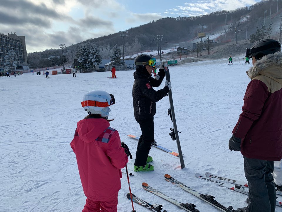 슬로프올라기전베이스에서간단하게 스키소개.스키기본자세 .넘어졌을때인나는방법 .스키를A자로만들어A자를크게만들어정지하는 (프로그화렌)수업을간단하게가진후 도도(초급)슬로프로이동한후 프로그보겐수업을 가져봤습니다!