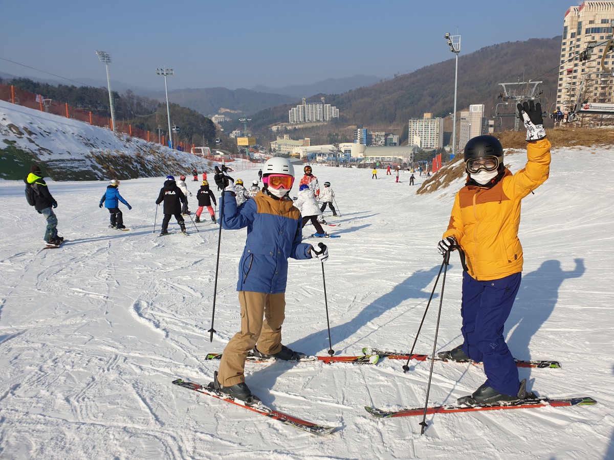 두분다 스키가 처음이셔서 초보재 래슨코스를 진행한후