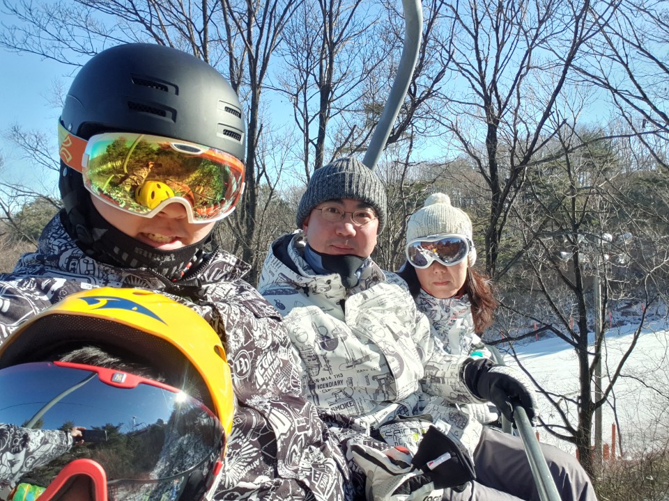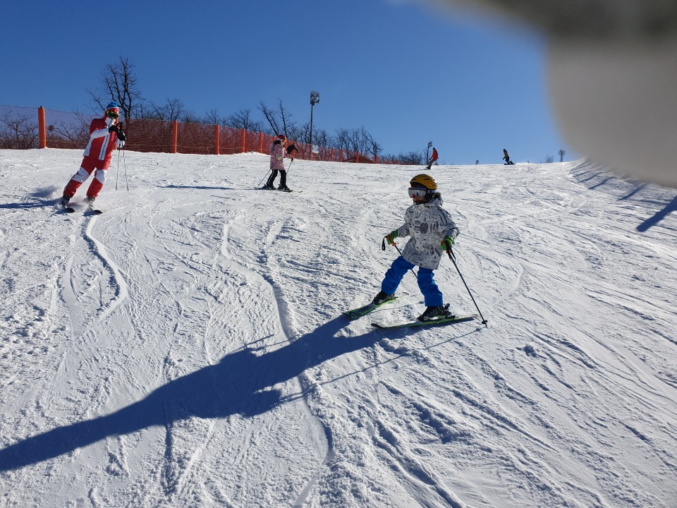 우선 기본적인 스키 자세를 알려주고 플루그 보겐(스키를 A자 형태로 만들어 활강하는 기술)을 마스터하는 것을 강습 목표로 삼았습니다.